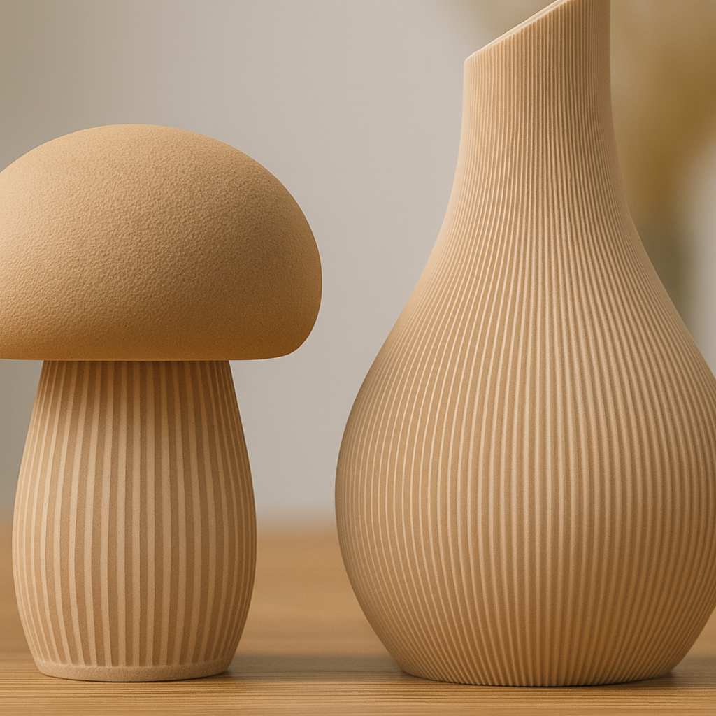 Unsere Designs vereinen skandinavische Formen, minimalistischen Stil und natürliche Materialien. Jede Vase, jeder Pilz und jede Figur wird mit höchster Präzision gedruckt und veredelt – ideal für Japandi-, Boho- und moderne Interieurs.